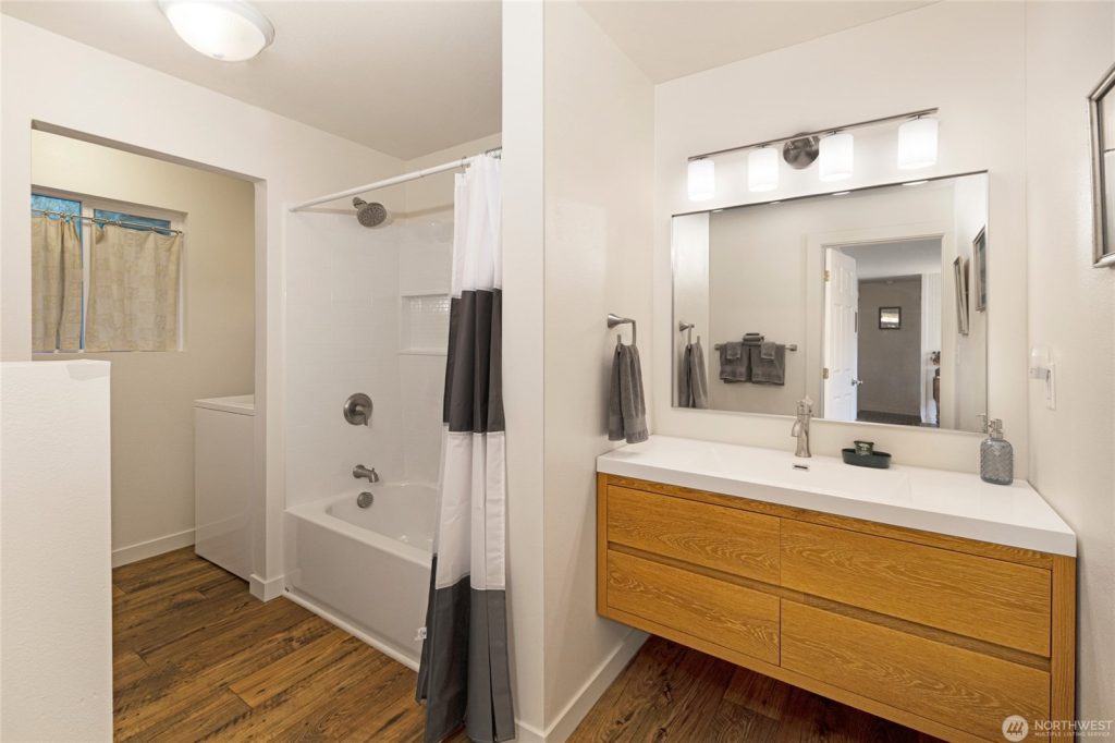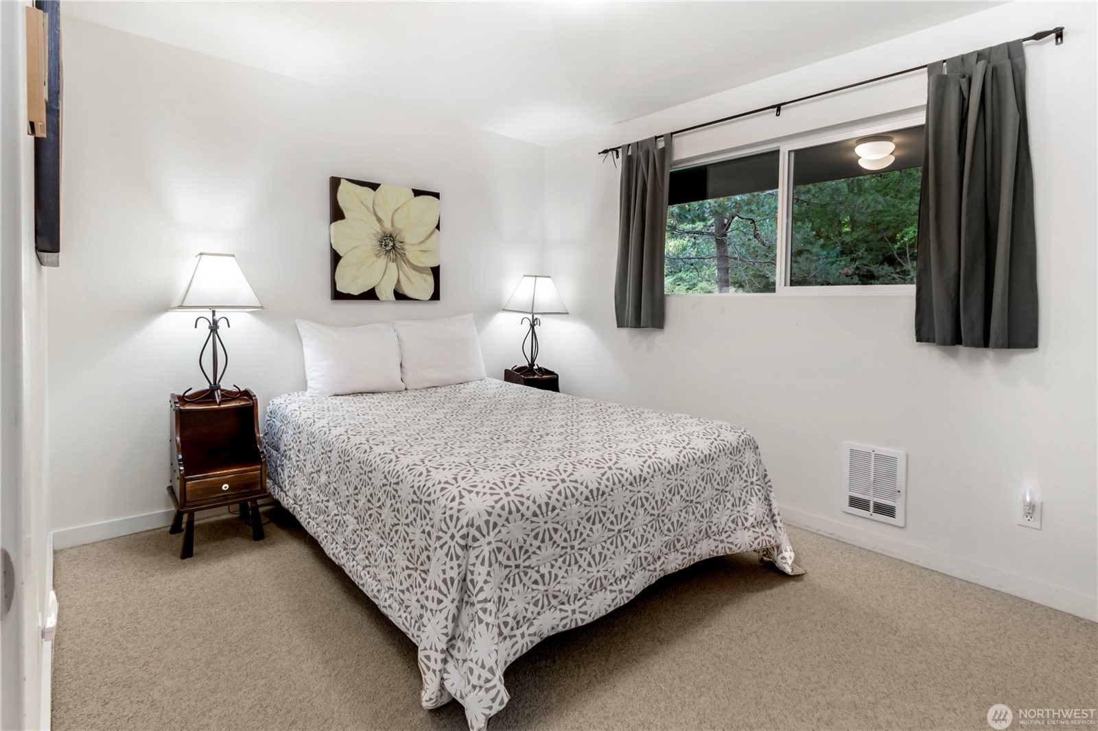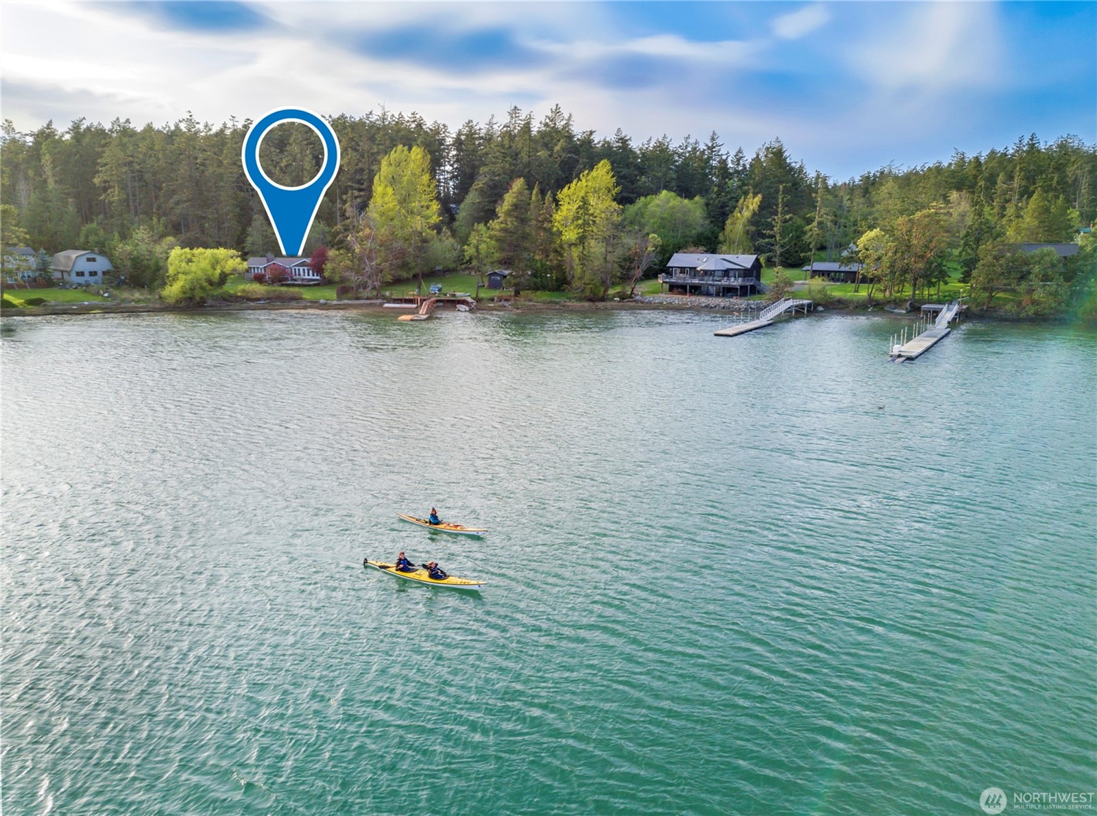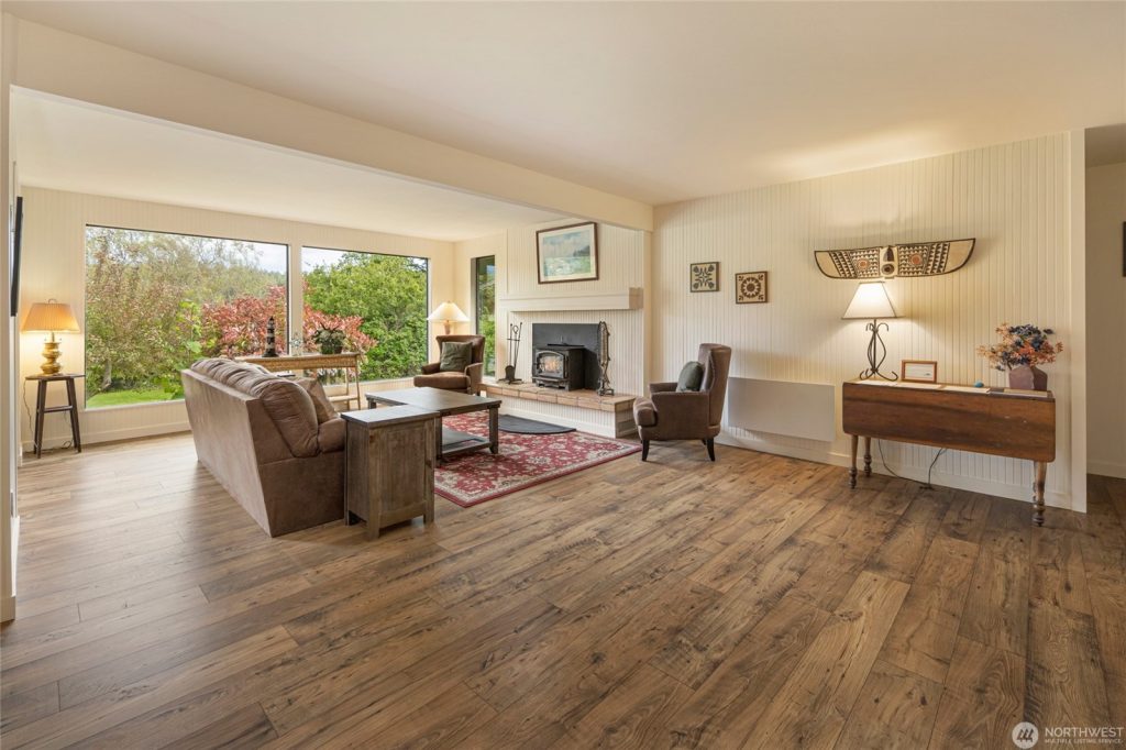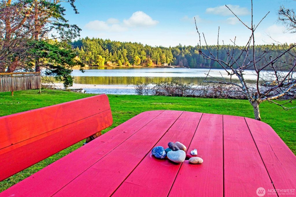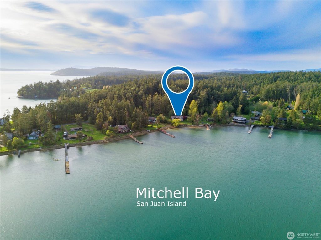 Peaceful waterfront retreat on Mitchell Bay with no-bank access for clamming, crabbing, or launching your kayak. Picture windows frame enchanting bay views, while a wood-burning stove adds cozy charm. The home offers both a living room and family room, plus a dining area with easy flow to the deck and patio. The primary suite features French doors opening to a private deck and an updated en-suite bath with oversized shower. Additional updates include new flooring and refreshed main bath. Relax in the new hot tub after a day of hiking, biking, or kayaking. Nestled in a quiet neighborhood, yet minutes to Roche Harbor Resort, marina, spa, Mount Young trails, and British camp National Park.