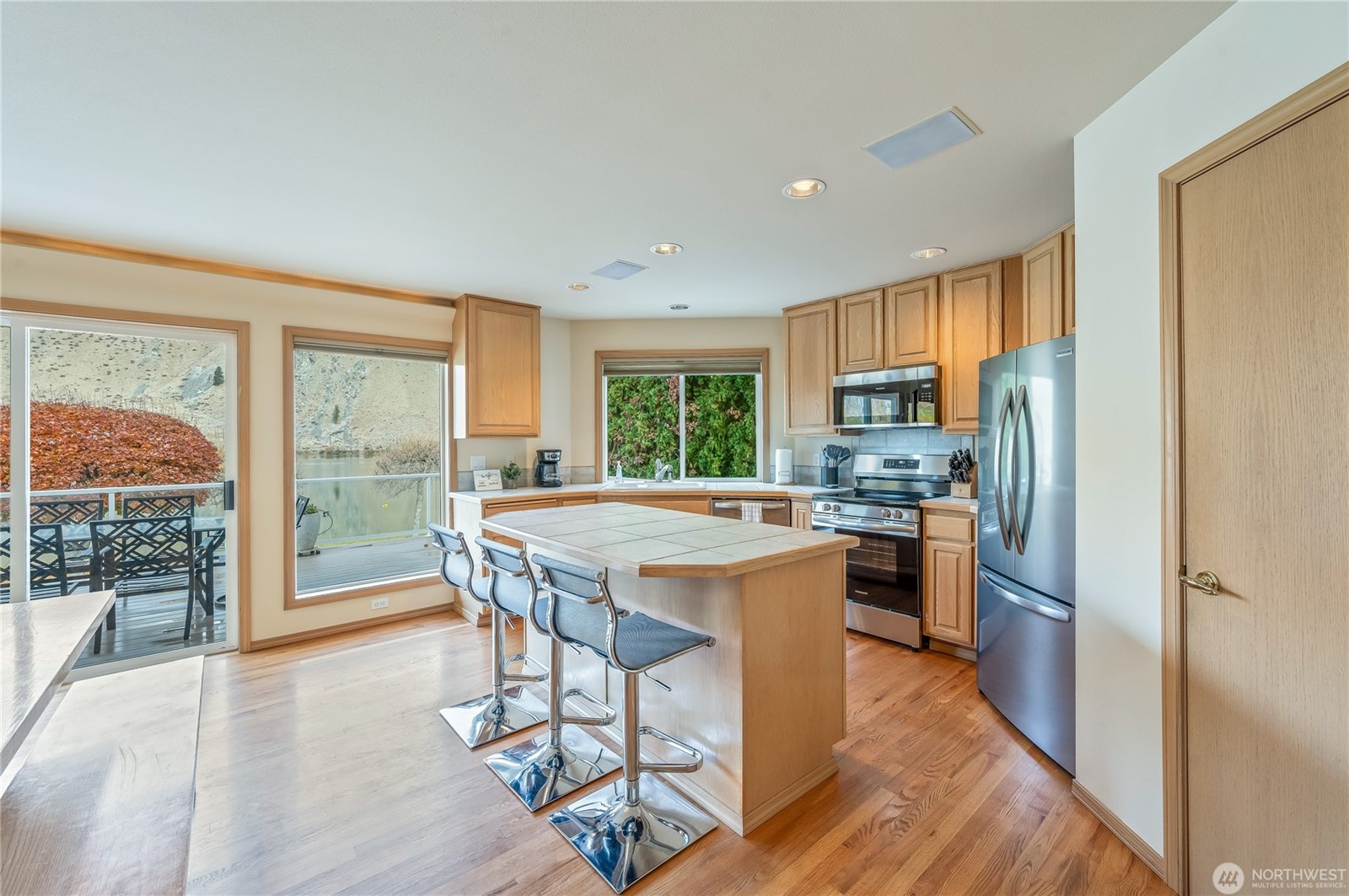 Welcome to lakeside living in Sun Cove, where every day feels like vacation. This thoughtfully designed 3 bed/3.5 bath waterfront home offers elevated views from the main level, cozy gathering spaces, and seamless indoor-outdoor living with a spacious composite wraparound deck. The lower-level guest suite with rec room and kitchenette opens directly to the shoreline - ideal for hosting long weekends, multi-generational stays, or effortless overflow. Enjoy brand new stainless steel appliances, upgraded community docks, EV-ready garage, easy-care landscaping, and plenty of space to park your lake toys. Just steps from the community pool, clubhouse, sport courts, park, boat launch, and moorage - here, fun happens all day long. Owner/broker.