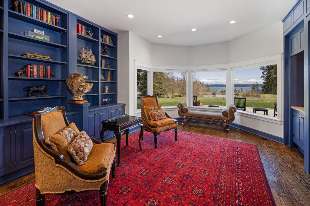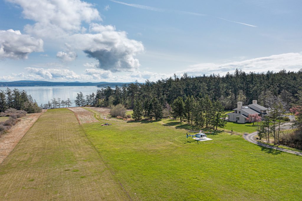 Experience the pinnacle of luxury island living with end-of-road privacy on 63± acres across and 515± feet of coveted low-bank waterfront. Panoramic views sweep over the San Juan Channel to Mount Baker and the North Cascades, offering a breathtaking natural backdrop year-round. The 8,674± sf two-level residence presents 6 bedrooms and 6 baths, thoughtfully designed with refined finishes, rich textures, and seamless indoor-outdoor flow for elevated entertaining and serene everyday living. Expansive terraces overlook orchards, gardens, and tranquil pond, creating a private retreat of rare beauty. Premier amenities include indoor pool, private gym, multiple garages, a historic barn, and a FAA-certified 2,400± ft airstrip with helipad - providing exceptional convenience and exclusivity. A distinguished legacy estate - commanding in presence, yet warmly inviting.